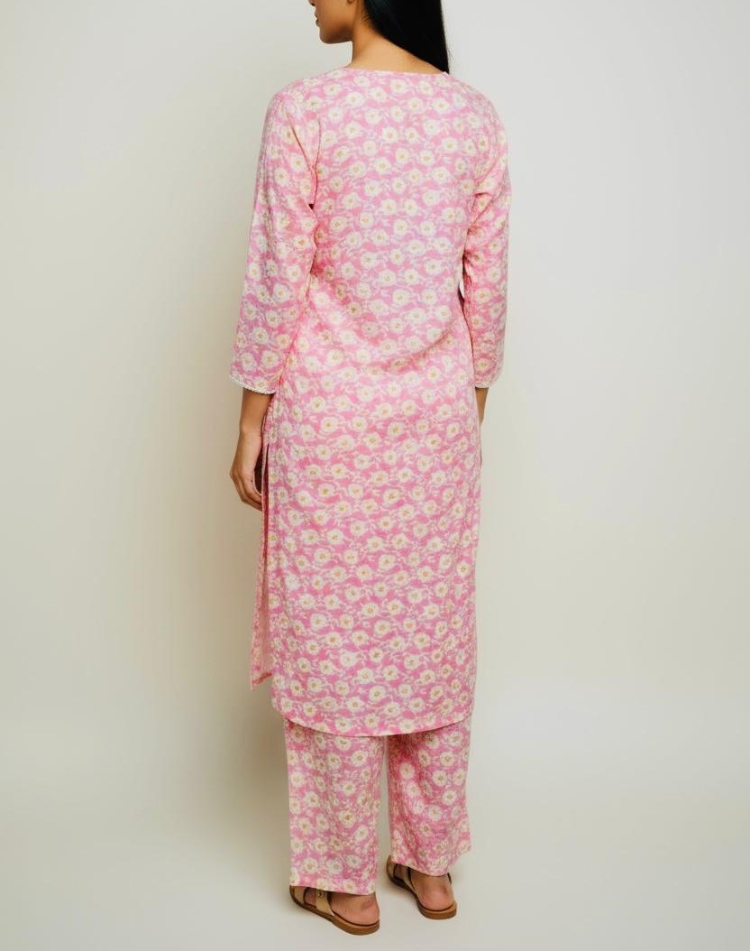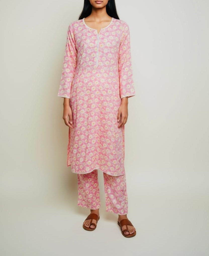 Description: Lawn straight printed kurta, featuring full sleeves and round neckline