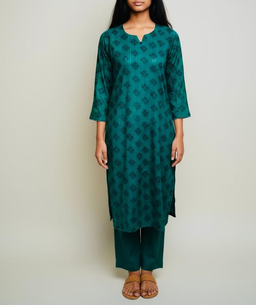 Description: Lawn straight printed kurta, featuring full sleeves and round neckline